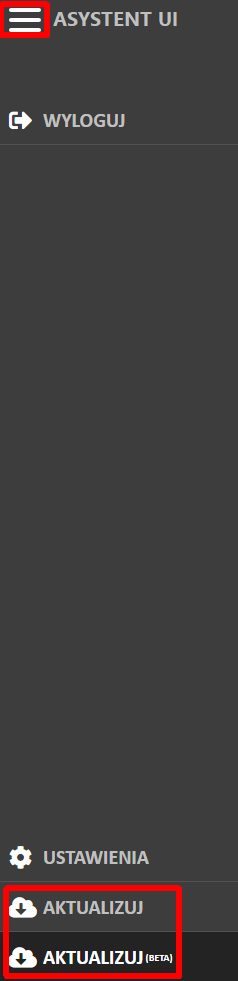 2026-03-05 10:59:30Aby zaktualizować Asystent UI, należy uruchomić Asystenta, następnie kliknąć ikonę trzech pionowych kresek (menu) i wybrać opcję Aktualizuj.