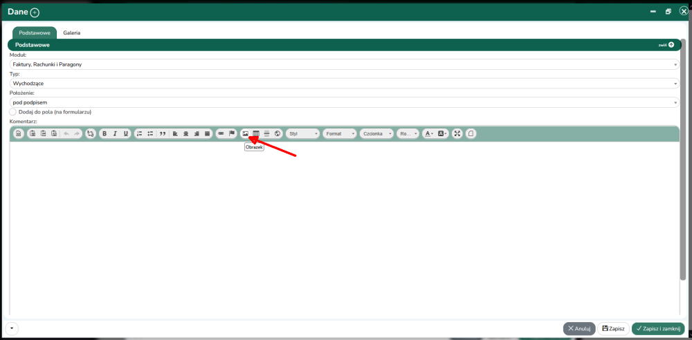 Jeżeli chcemy dodać w stopce faktury zdjęcie w pliku jpg lub png, który na stałe będzie widoczny na fakturze należy postępować według poniższych czynności.