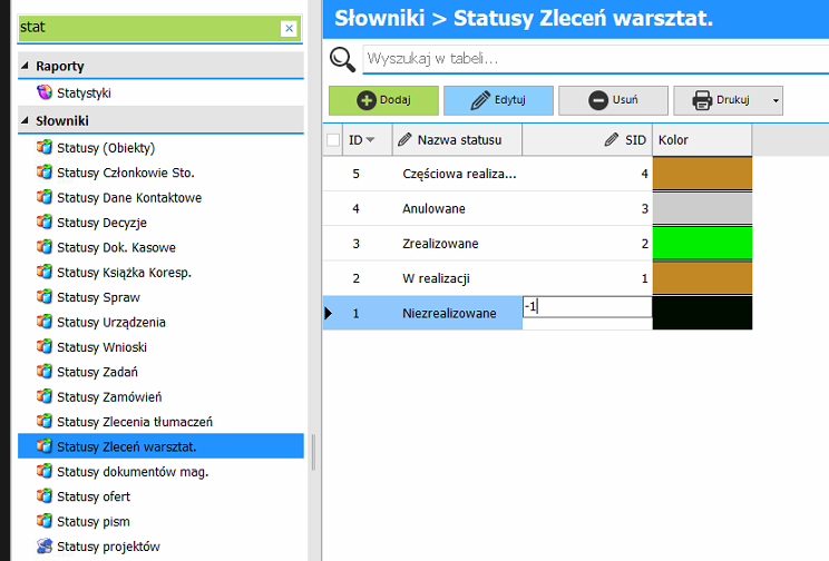 2025-11-17 23:23:13Aby edytować status warsztatowy (inline) wkazujemy myszką na pole SID następnie wciskamy F2