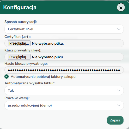Dostęp do wersji produkcyjnej w Aplikacji Podatnika będzie możliwy od 1 lutego 2026. Wtedy również należy złożyć wniosek o certyfikat a następnie wprowadzić go do konfiguracji Asystenta.