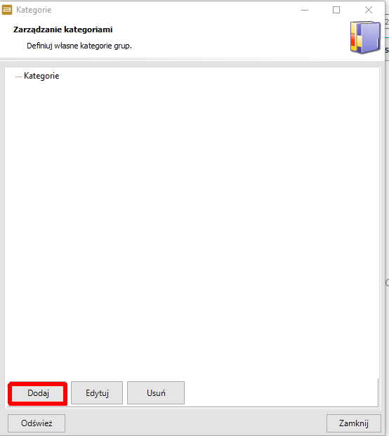 Ustaw kursor myszy na słowie Kategorie, a następnie kliknij prawym przyciskiem myszy i wybierz opcję Dodaj.