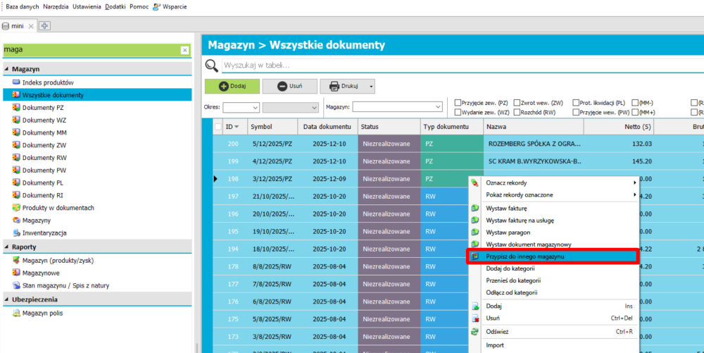2026-01-05 13:29:01Aby scalić dokumenty magazynowe a zarazem indeks magazynowy należy zaznaczyć dokumenty magazynowe i wybrać magazyn docelowy.