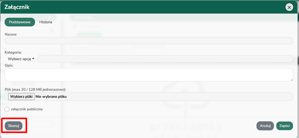 2026-03-06 15:38:20Aby zeskanować załącznik, należy zalogować się do Asystent UI, używając danych do chmury. Następnie przejść do wybranej zakładki, np. Pojazdy → Załączniki → Dodaj → Skanuj.
