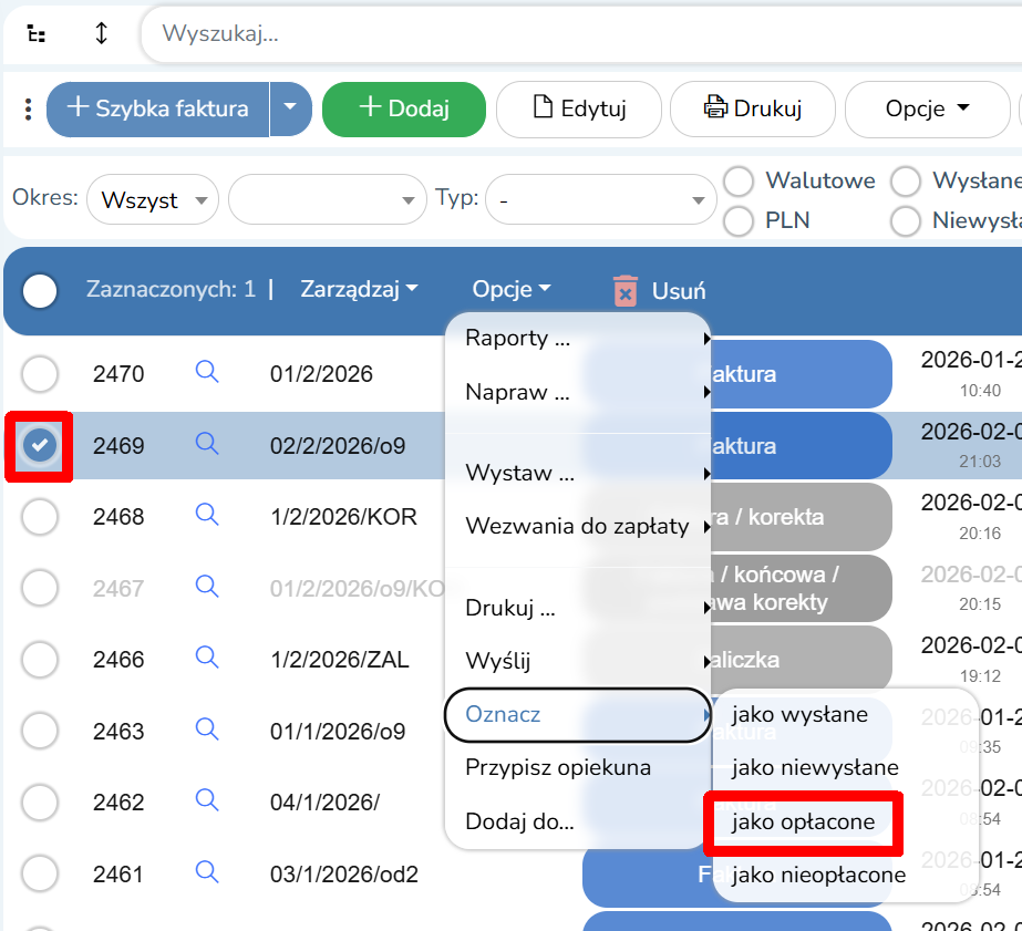 Status opłacenia faktury