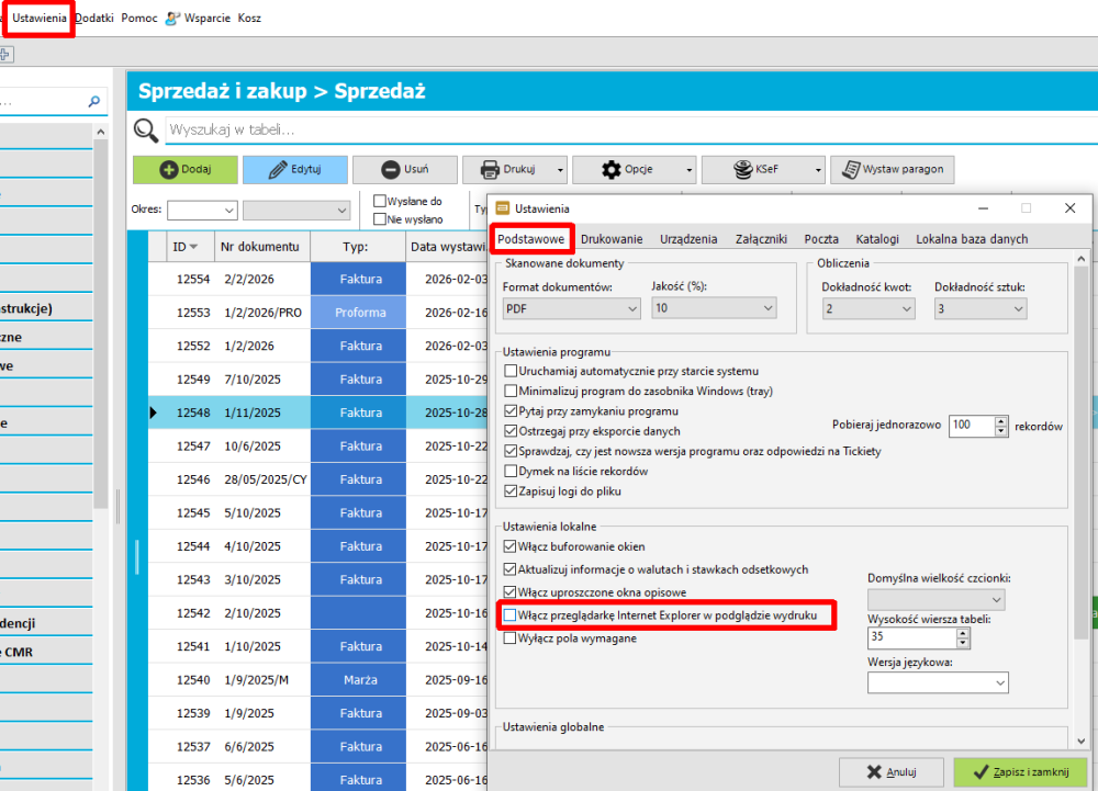 Włacz przeglądarkę na podglądzie wydruku