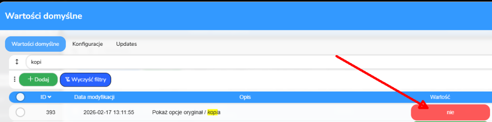 2026-02-17 13:19:12Aby aktywować na wydruku oznaczenia „Oryginał” i „Kopia”, przejdź do: Menu → Ustawienia → Wartości domyślne → Pokaż opcję oryginał/kopia. Następnie zaznacz tę opcję kliknij edytuj i ustaw jej wartość na „Tak”.